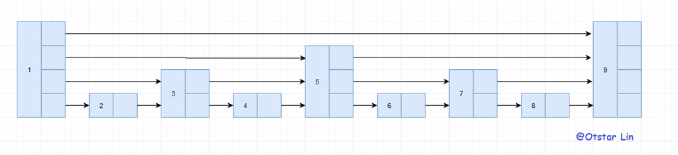 假如我们要查找 6,只需要走 1->3->5->6,减少了 2 步,那如果我们再加几层索引呢?